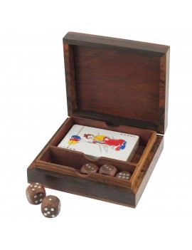 BOITE bois...Boîte en bois avec jeux de dominos et de carte, dominos en bois, 17 cm.