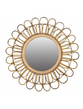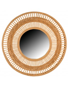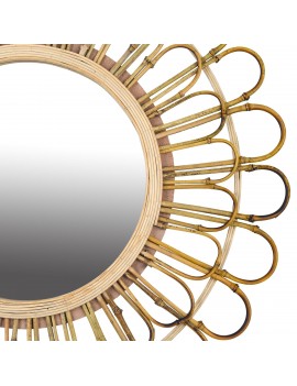 MIROIR mural...MIROIR mural Rond en BAMBOU de 80cm Design Rosace couleur Naturel