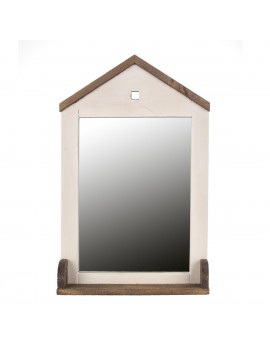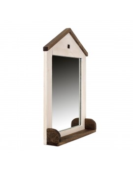 MIROIR Mural en...MIROIR Mural en Bois en forme de Maison de 65cm avec petite étagère