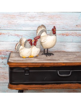 POULE COQ Blanc Décoration CAMPAGNE la ferme de 18cm