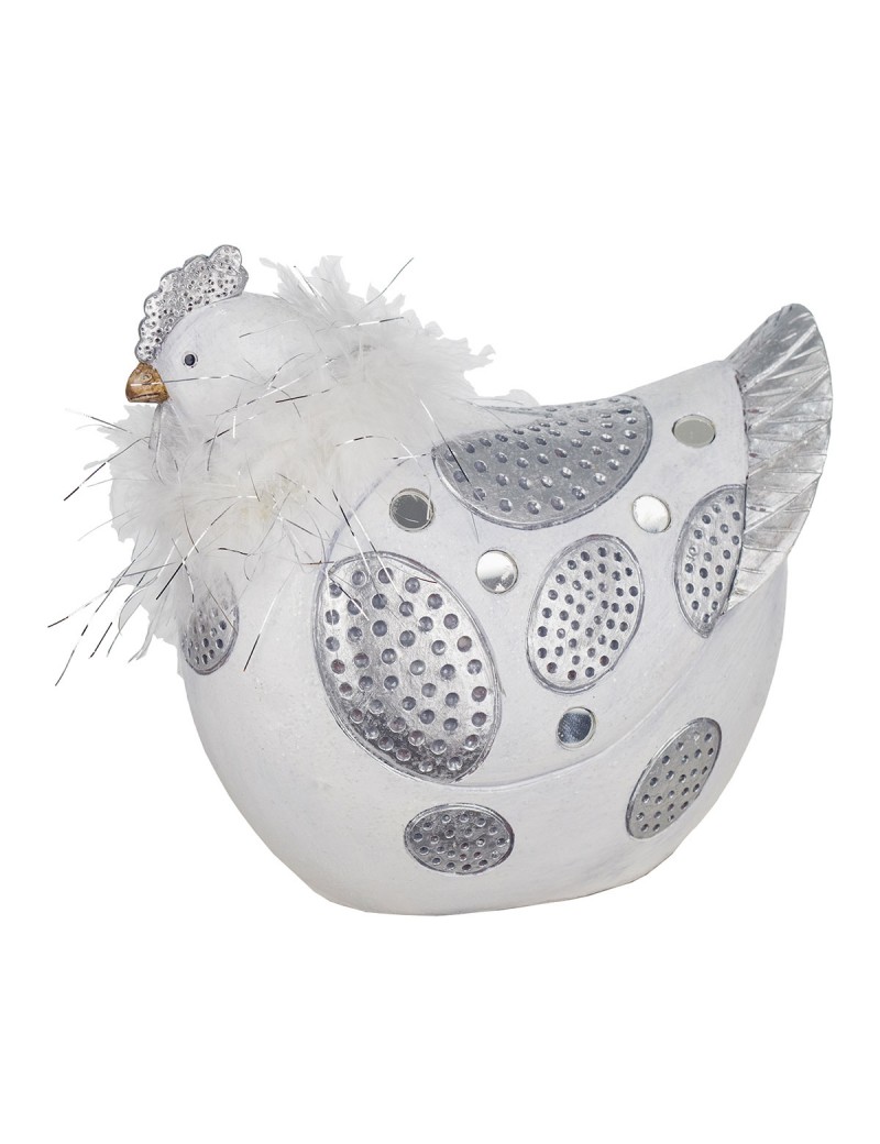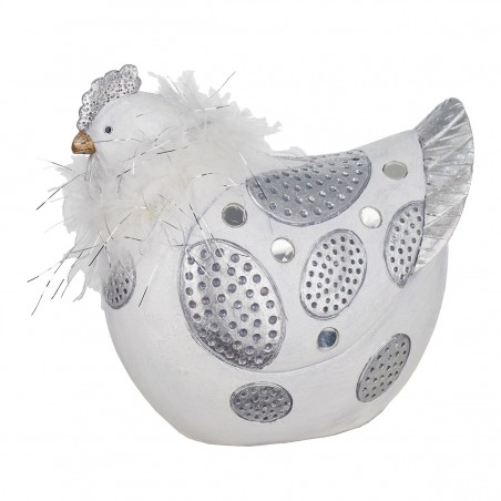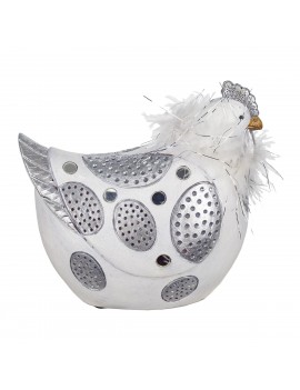 POULE Décoration Statue de 18cm couleur Blanc et Argent