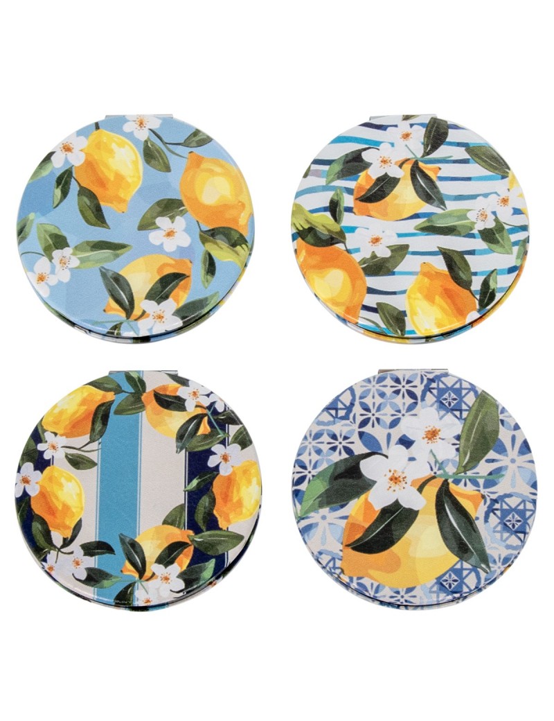 Miroir de poche rond en métal Décoration Citrons de 7cm