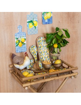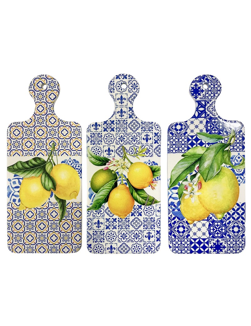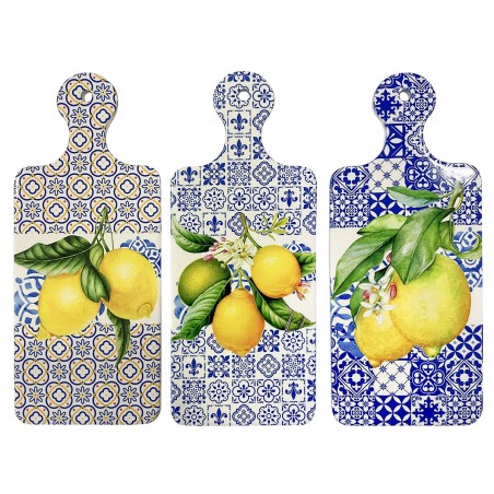 Planche à découper en céramique Set de 3 Décoration Citron Azulejos Bleu