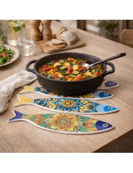 Dessous de Plat POISSON de 30cm en céramique en relief doré