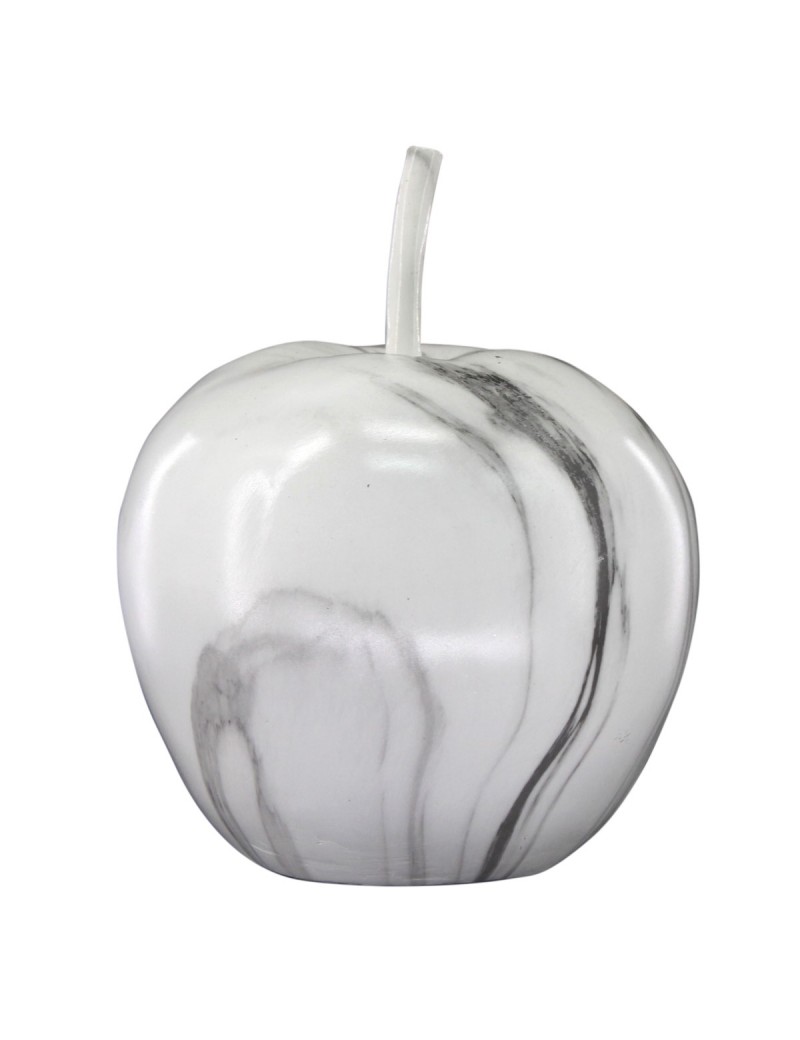 Décoration style Chic, une Statue de Pomme de hauteur 19cm couleur Blanc Gris Design Marbré.