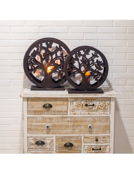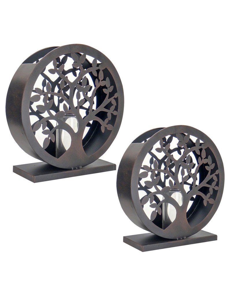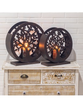 Grand Bougeoir rond en Métal Décoration Arbre de Vie Set de 2 Taille 45cm