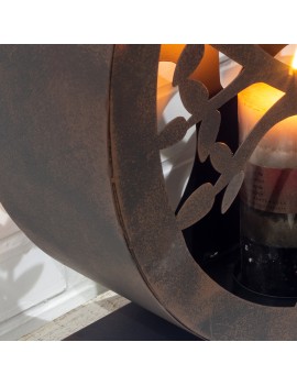 Un Lot de 2 grands Bougeoirs ronds en Métal et Verre sur socle Décoration Arbre de Vie couleur Brun de 45cm pour le plus haut.