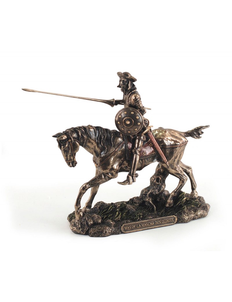 STATUE DON QUICHOTTE à cheval décoration Bibliothèque 22cm