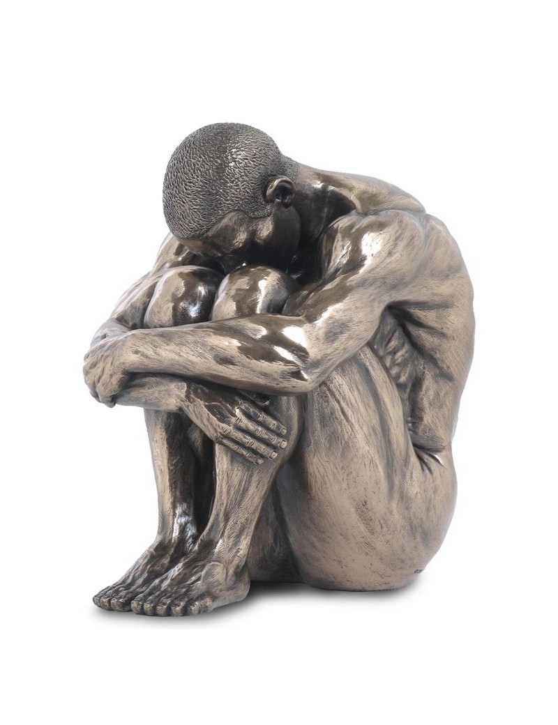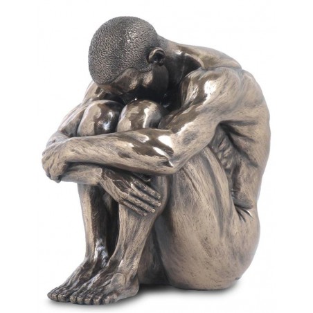 Un cadeau déco neuf, une statue représentant un homme nu assis, dans une posture esthétique de couleur bronze.