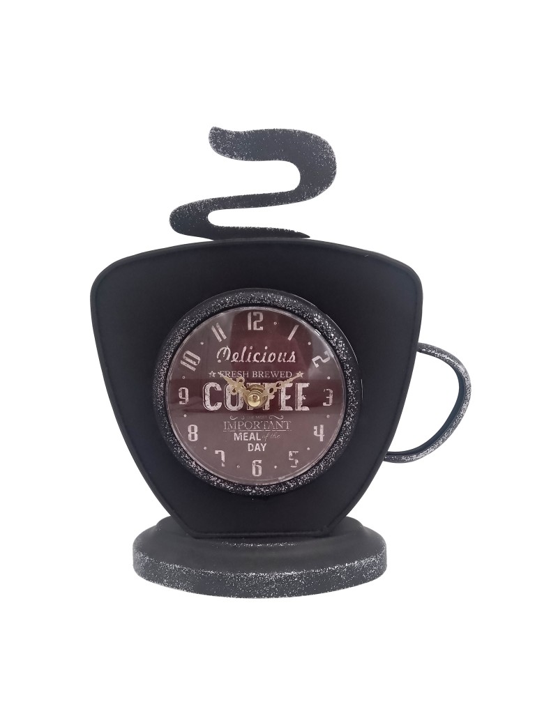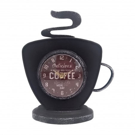 Horloge Tasse de Café en métal couleur Noir Brun de 25x22cm