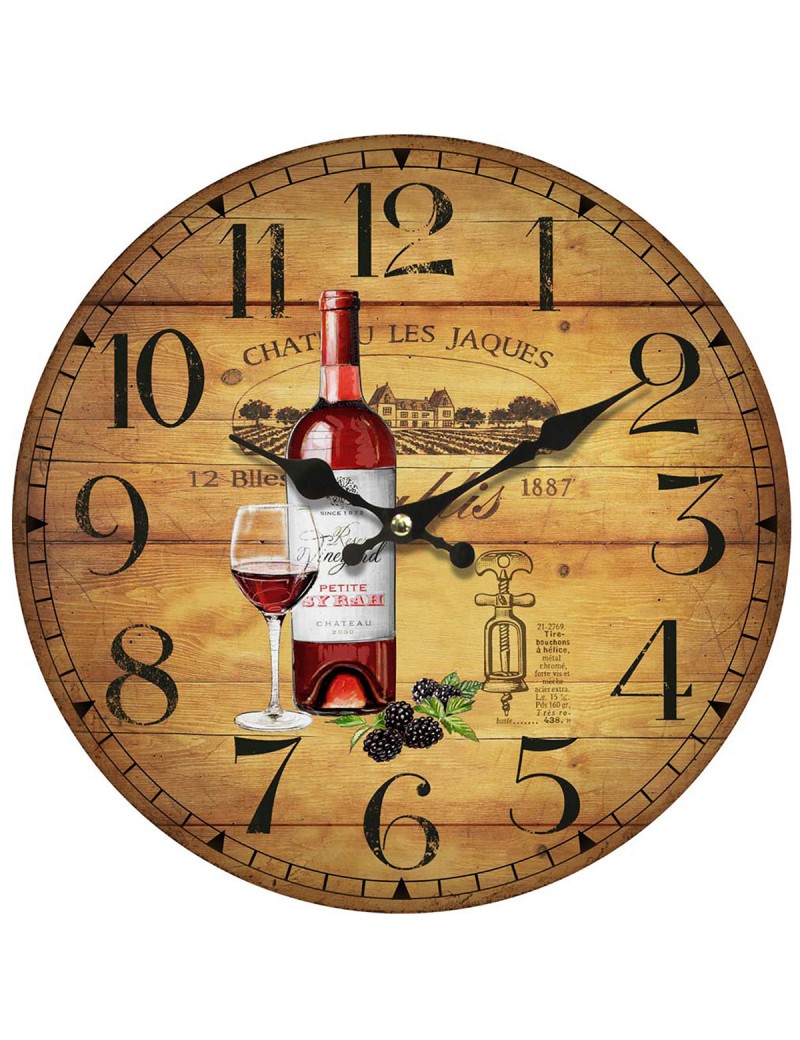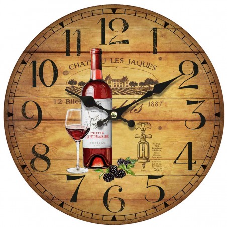 Horloge Murale Décoration Vin Bouteille en Bois de 34cm de diamètre