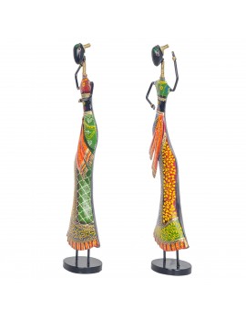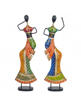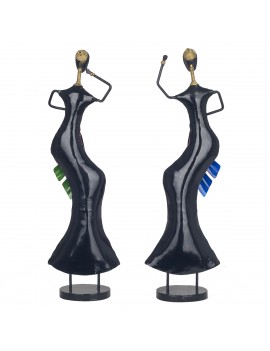 Statue Décoration Set de 2 en métal Femme Danse Afrique ethnique 48cm