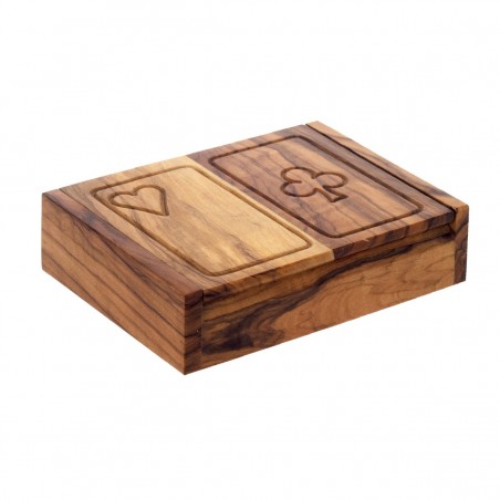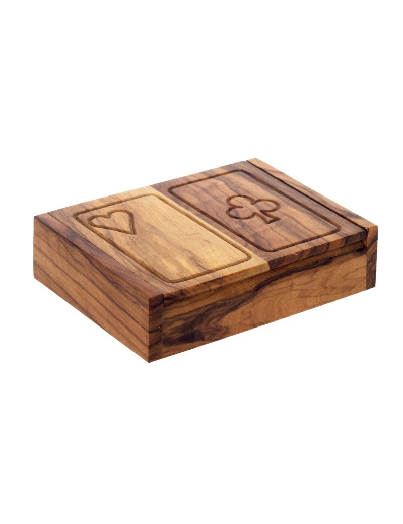 COFFRET Boite de Jeu de Cartes en beau Bois d'Olivier de 16x12x3cm