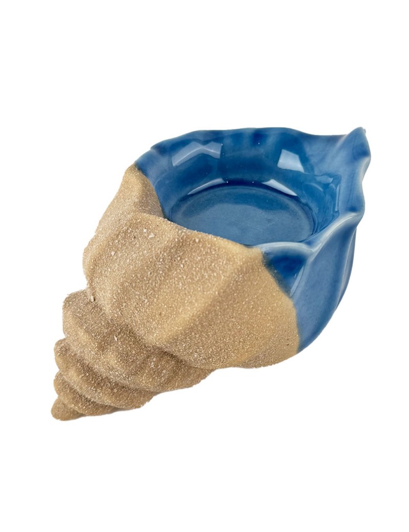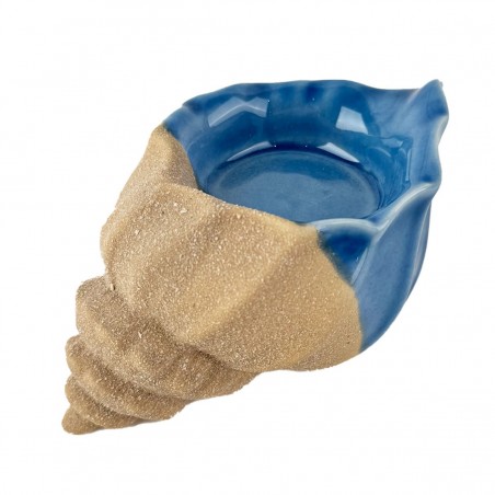 BOUGEOIR en céramique en forme de Coquillage couleur Bleu et Sable