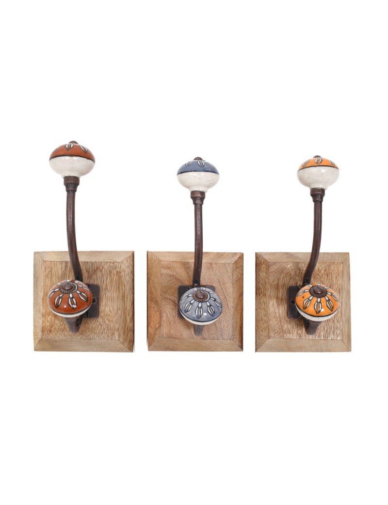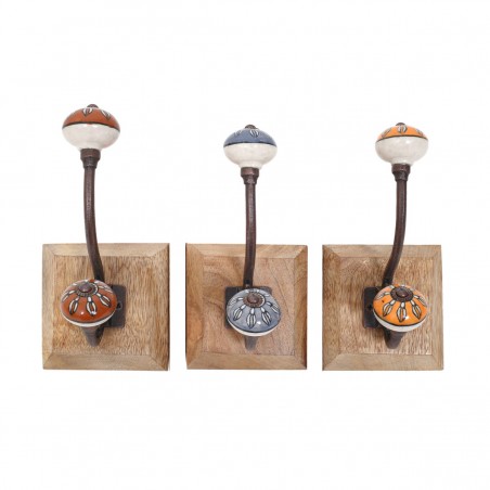 Patère 18cm en Bois et Métal avec 1 crochet avec embout en céramique couleur