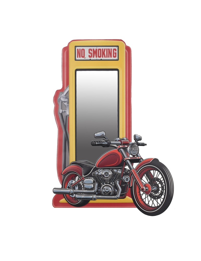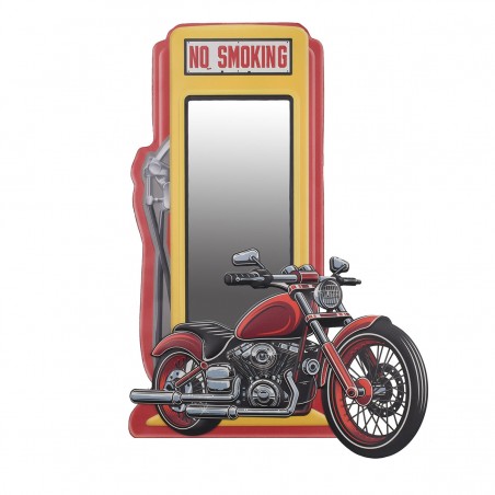Décoration Collection Vintage Industriel, Un Miroir mural dans une applique en Métal Pompe à Essence Rétro et Moto Rouge Vintage.