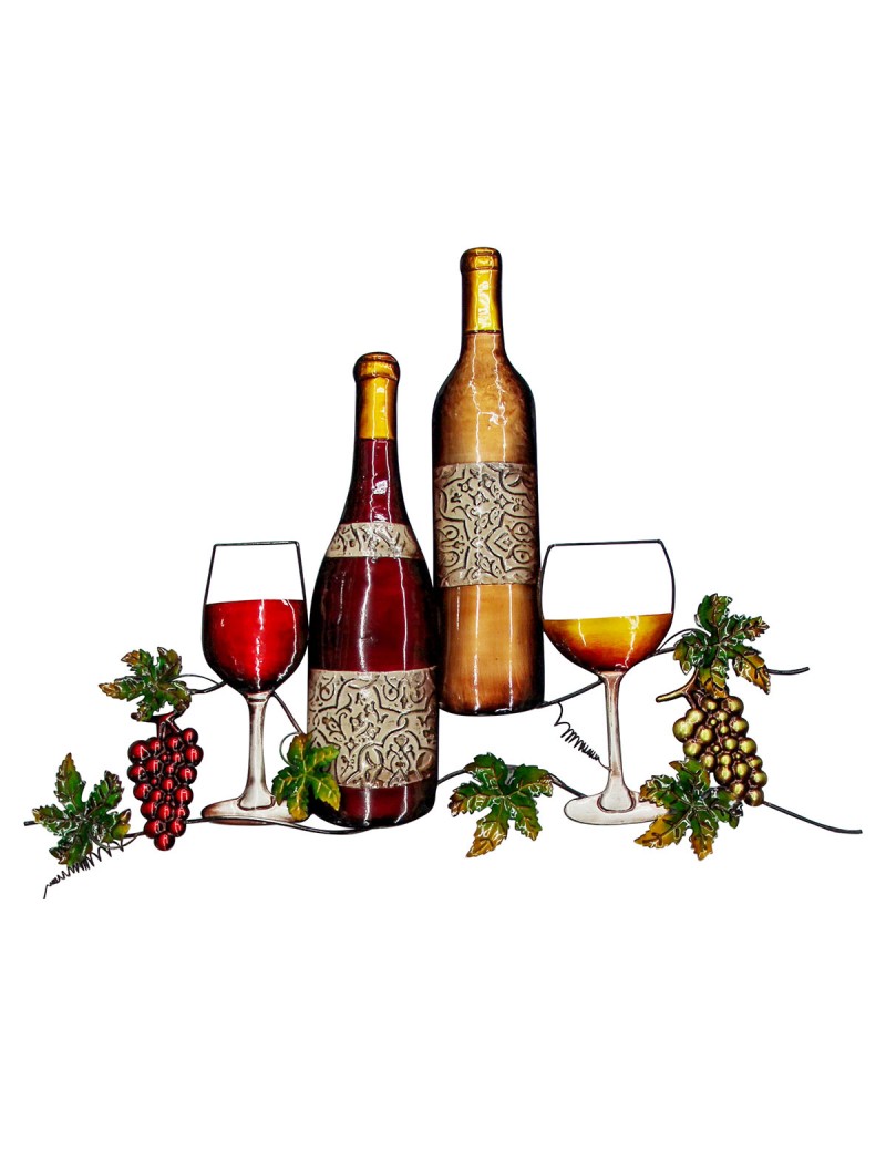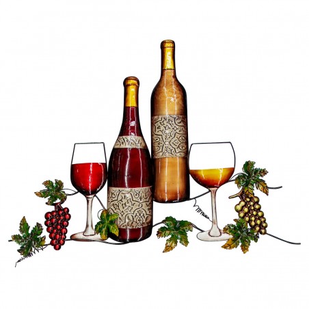 Décoration murale Vin Bouteille verres Raisins en Métal de 68cm