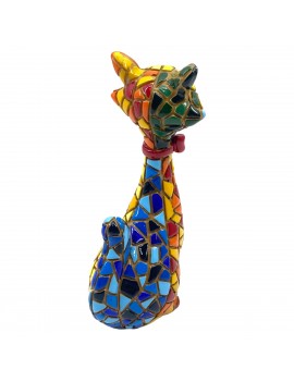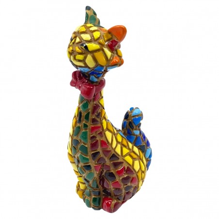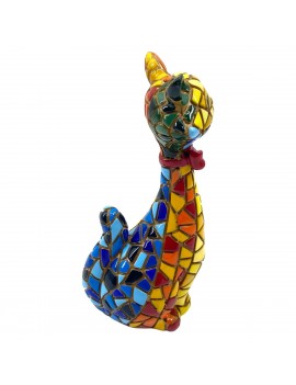 CHAT Assis Statue de 10cm Design Mosaïque multicolore