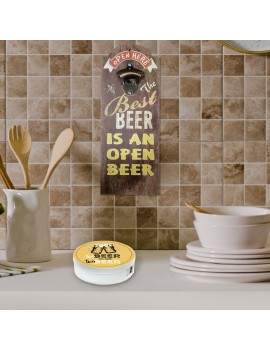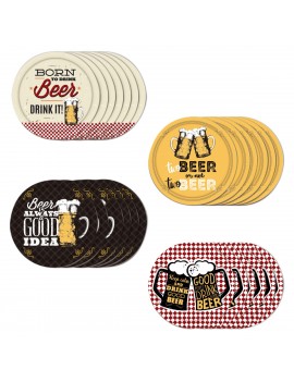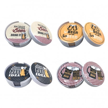 Un Coffret de service de 6 Sous Verre Sous Bock au design Logo BEER Rétro, chaque sous verre est rond et mesure 11cm