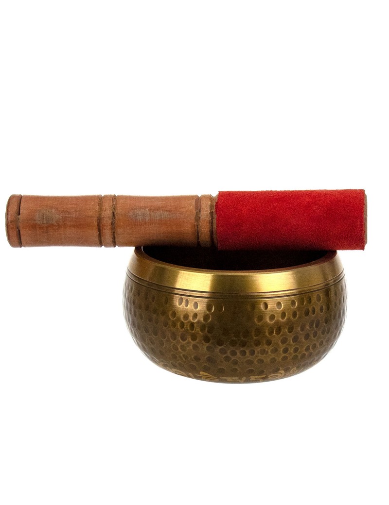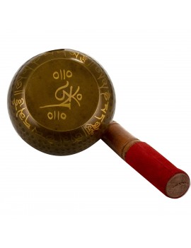 Cadeau Déco Zen Bol Tibétain Chantant avec son Maillet bois et poignet tissus rouge.