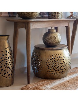TABOURET en...TABOURET en Bois de Manguier Design géométrique hauteur 56cm