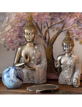 BOUDDHA Statue...BOUDDHA Statue Décoration buste de couleur Gris argenté et doré