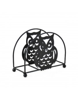 Porte serviette...Porte serviette de table en métal noir Décoration Chouette Hibou de 15cm
