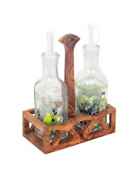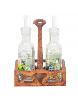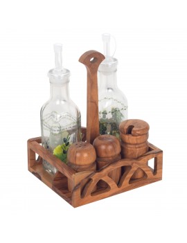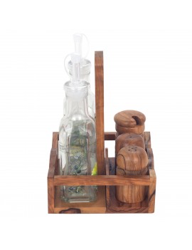 HUILIER...HUILIER Vinaigrier serviteur en Bois d'Olivier avec 5 éléments Poivre Sel