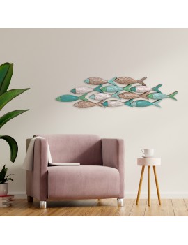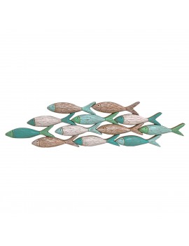 POISSONS...POISSONS Décoration murale de 59cm en Bois couleur Naturel et Vert d'eau