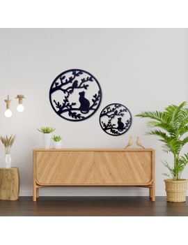 DECO murale...Décoration murale ronde en métal représentant deux chats amoureux dans un arbre.