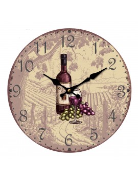 Horloge murale...Horloge murale ronde en Bois Décoration Vin vigne dégustation de 34cm