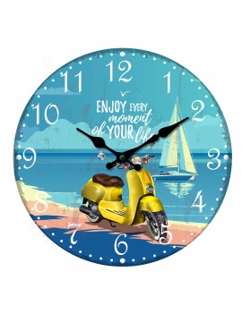 Horloge murale...Horloge murale Décoration Scooter en Bord de Mer en Bois de 34cm
