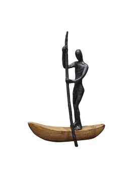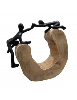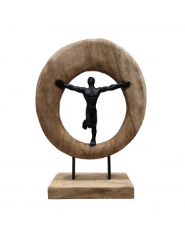 Statue...Statue Décoration 68cm de Personnages métal en équilibre sur un socle en Bois