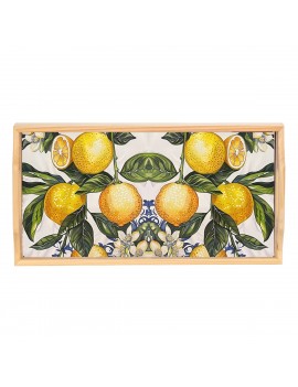 PLATEAU de...PLATEAU de présentation Vide Poche en Bois rectangulaire 33cm Déco Citrons