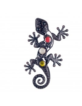 Salamandre...Salamandre Gecko Lézard un Lot de 2 en Métal et Verre Couleur Ocre Cuivré