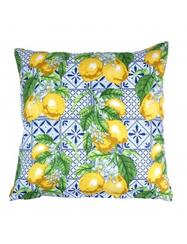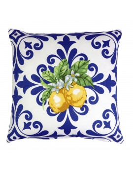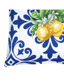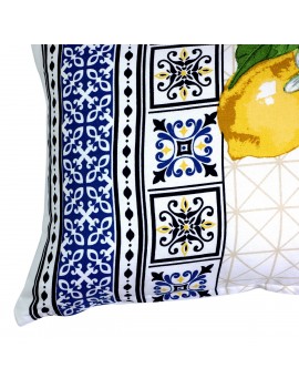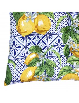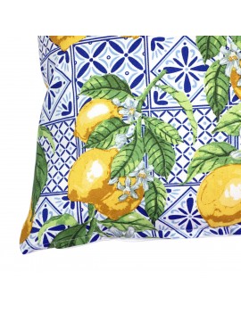 COUSSIN en coton de 45x45cm Décoration Citrons Azuléjos avec rembourrage