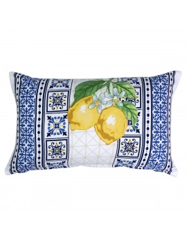 COUSSIN rectangulaire 50x30cm Décoration Citrons et Azulejos Bleu Blanc
