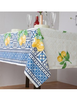 NAPPE en coton de 150x150cm Décoration Cuisine Citrons Azulejos
