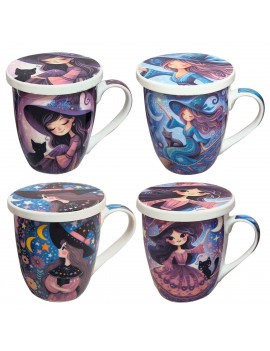 MUG à Thé...MUG à Thé Décoration CHAT 12cm en Porcelaine avec couvercle et filtre métal