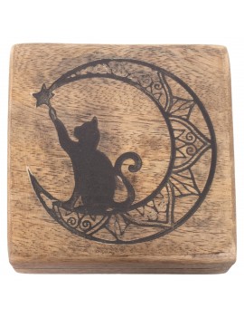 Fée de la Lune Statue de 18cm Design Fantasy sur socle avec 1 chat