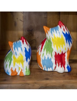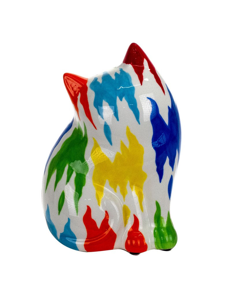 Décoration Collection Chat, une Tirelire amusante en forme de Chat assis en Dolomite couleur Graffiti.