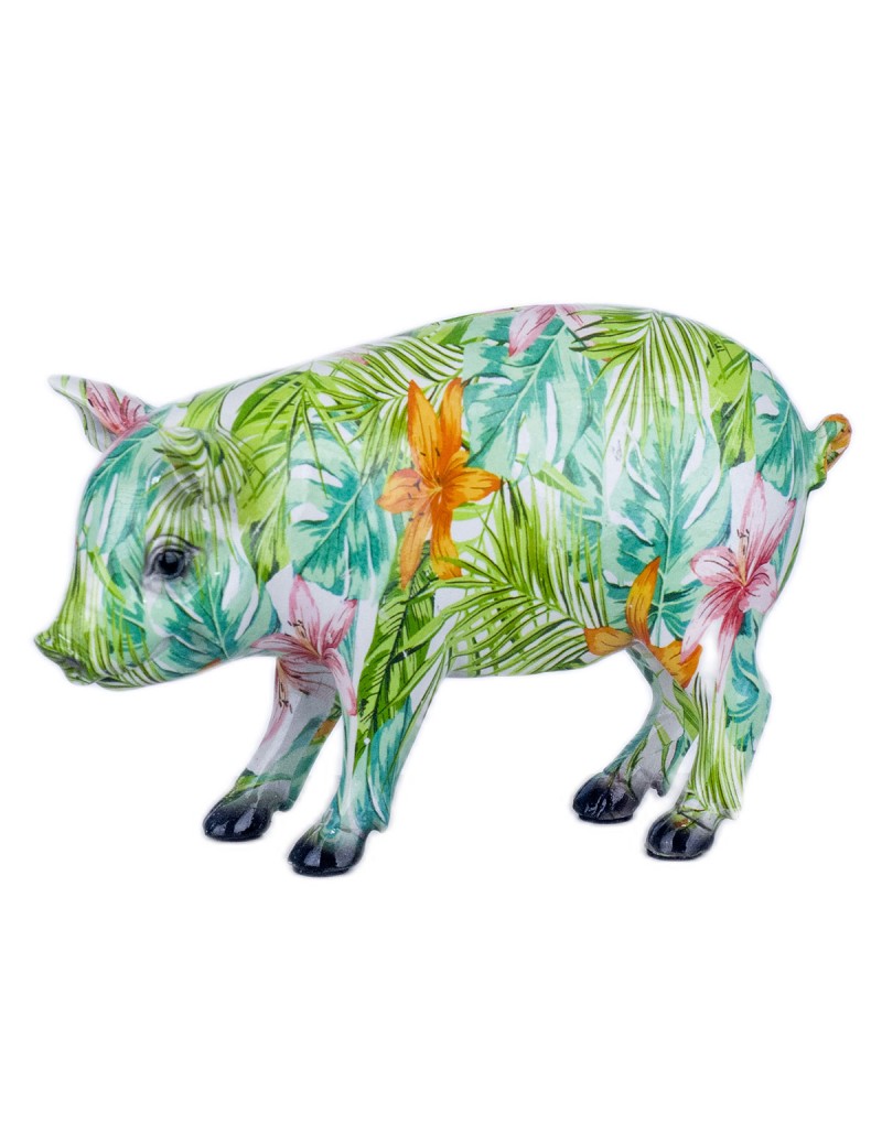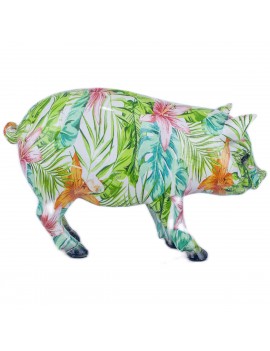 Une Décoration esprit Tropical, statuette Cochon Hibiscus.