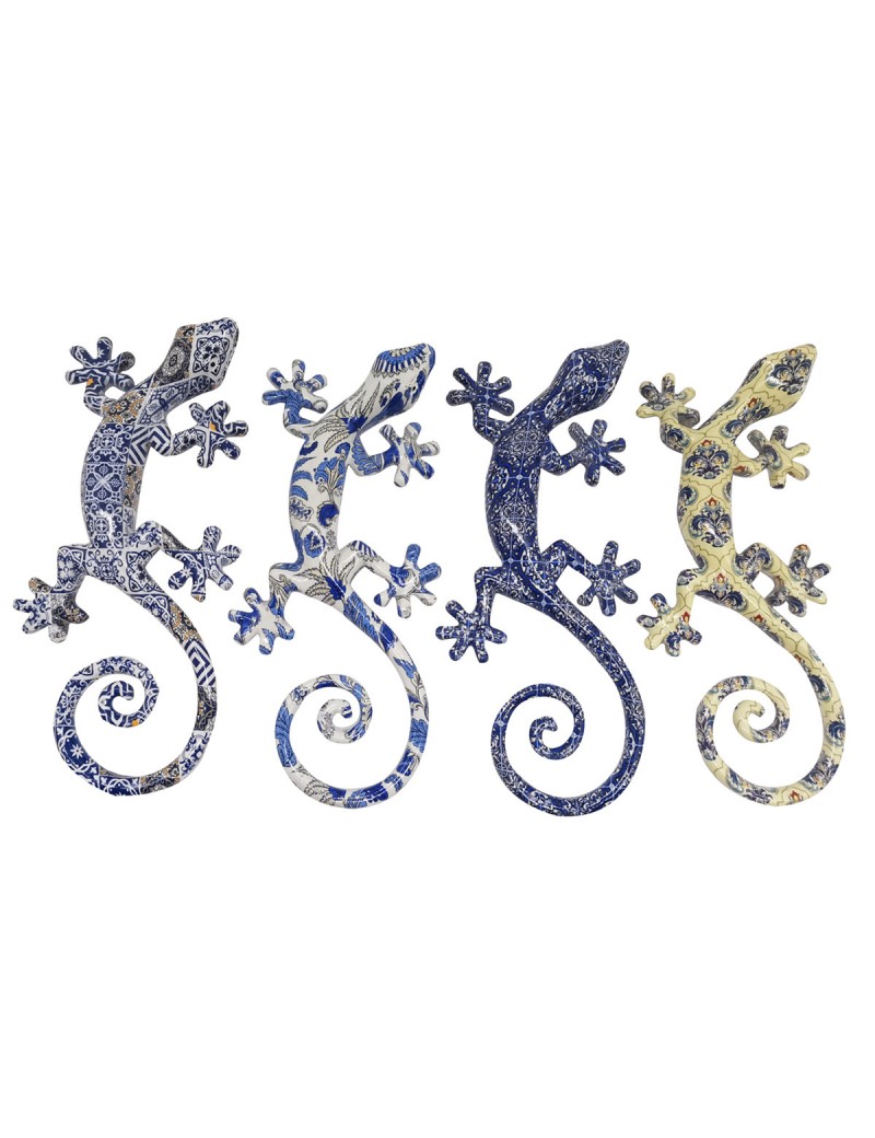 Un Lot de 4 Geckos Lézard de longueur 17cm Décoration ornement Bleu marine Indigo design été Sud.