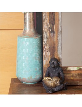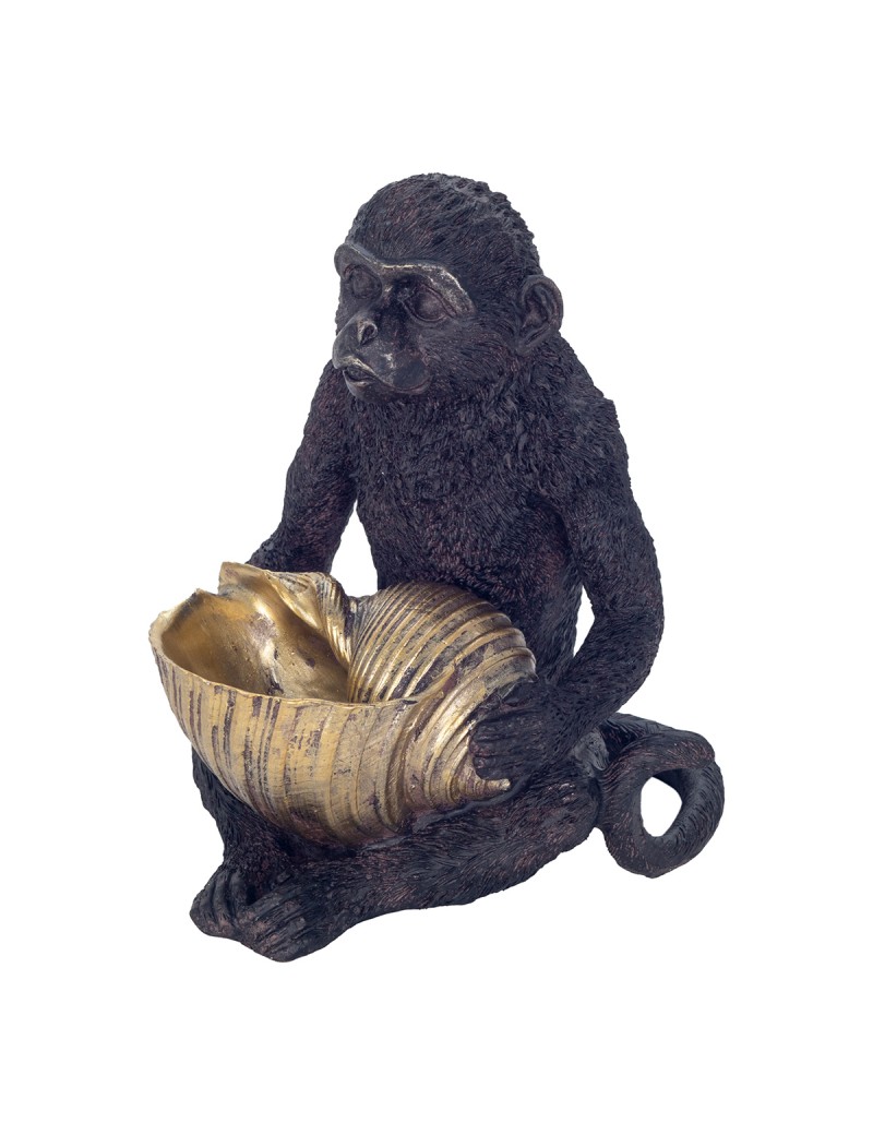 Décoration pratique, une Statue de Singe assis avec un Coquillage vide poche de couleur Or.