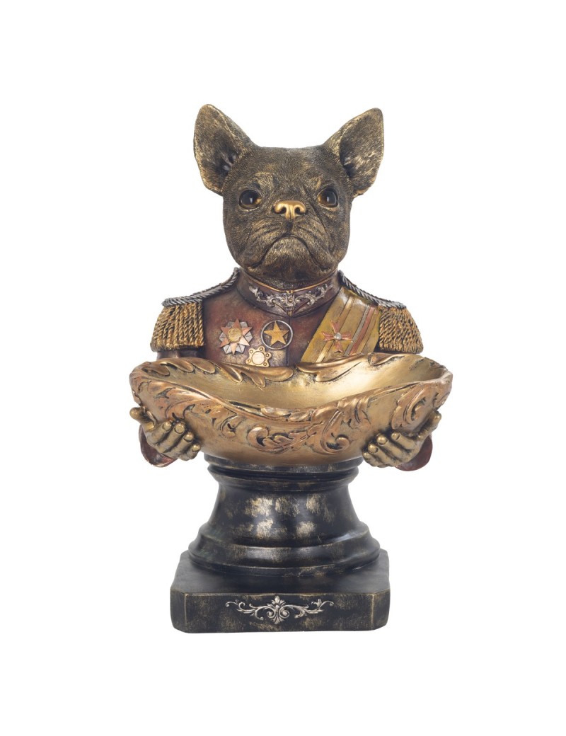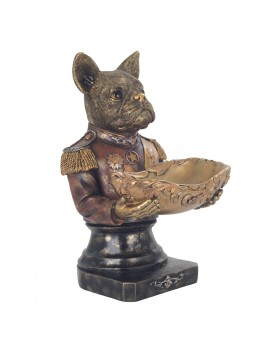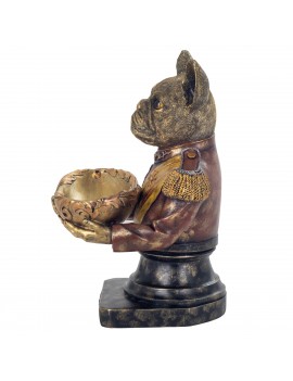 Décoration d'Intérieur Hall Entrée, Statue sur socle d'un Bouledogue avec un Plateau Vide poche pratique.