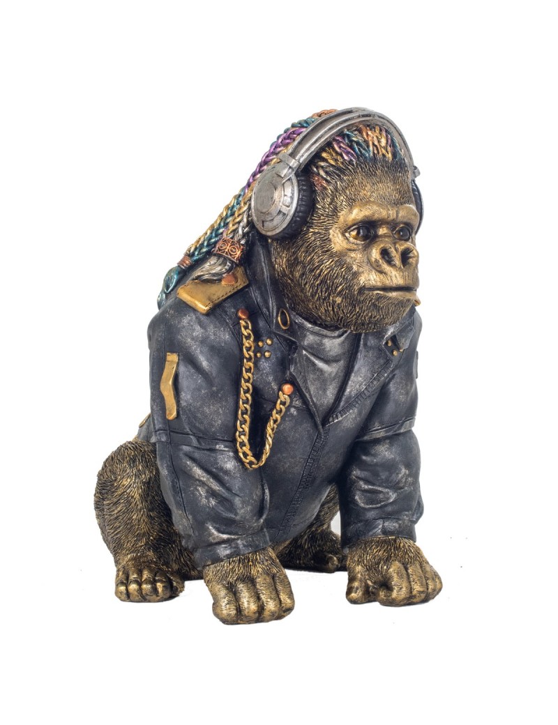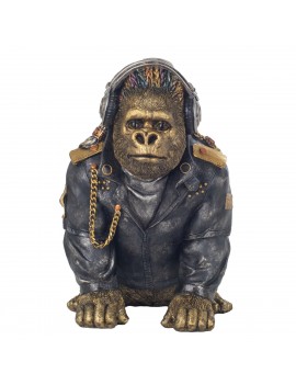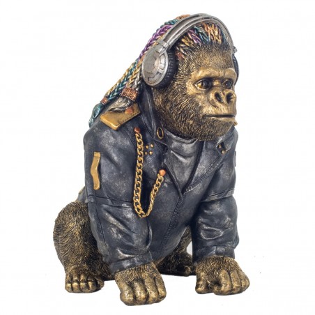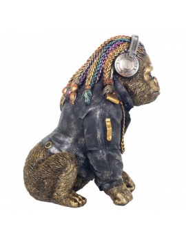 Singe Gorille avec un Casque de Musique Statue Décoration de 33cm