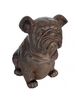 Décoration de Jardin Terrasse, Statue de Chien Bouledogue assis en magnésie de couleur Brun.