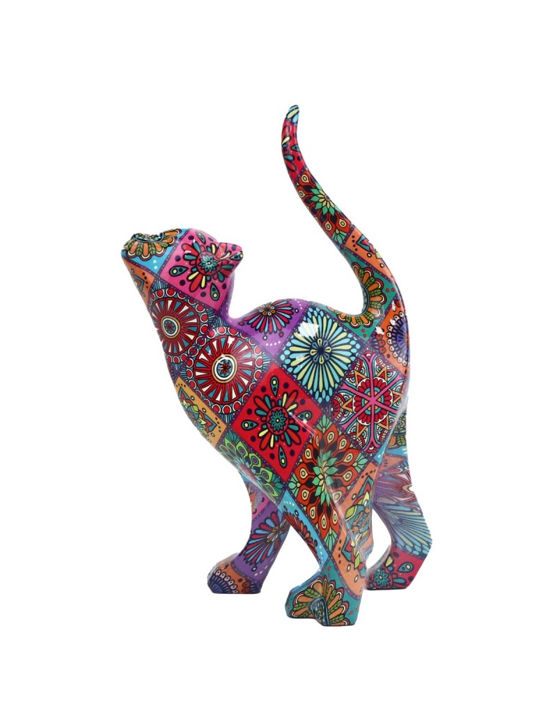 CHAT Statue Décoration de 31cm Design Patchwork Bohême