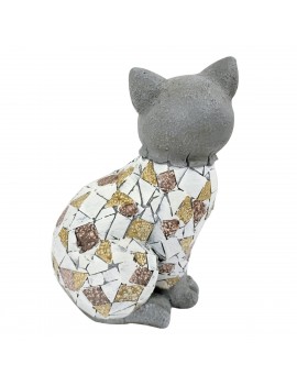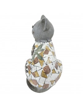 Décoration d'extérieur de Jardin, statue en Magnésie de Chat assis tête et pattes grises Design Mosaïque.