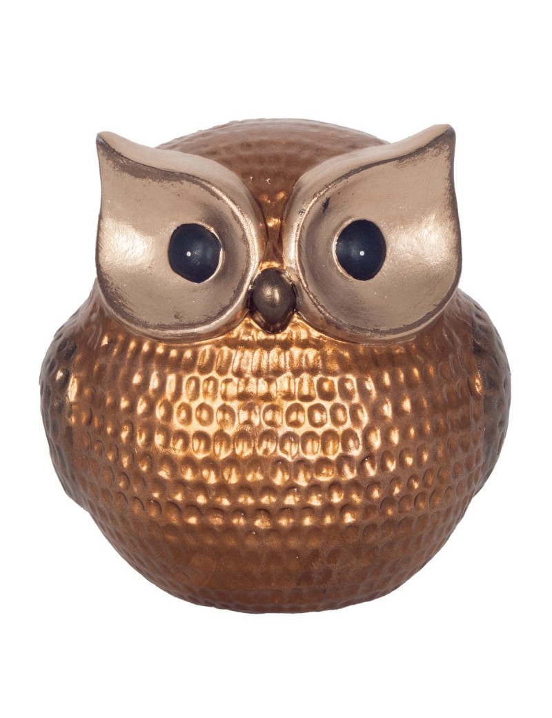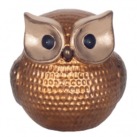 HIBOU Chouette Statue Décoration ronde de 14cm couleur Brun Cuivre.